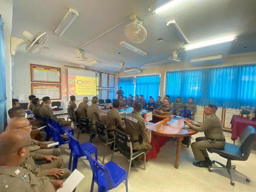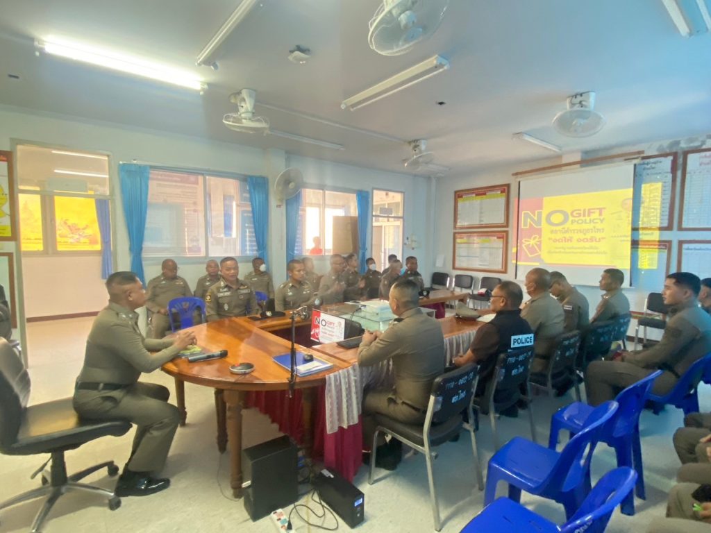 วันที่ 8 ม.ค. 2567 เวลา 09.30 น. พ.ต.อ.พงศ์ยุทธ์ แก้วดอนรี ผกก.สภ.ไพร ประชุมชี้แจงแจ้งประกาศของสถานี เรื่องนโยบายต่อต้านการรับสินบน และการไม่รับของขวัญของกำนัลหรือประโยชน์อื่นใด จากการปฏิบัติหน้าที่ ประจำปีงบประมาณ พ.ศ. 2567 ให้ข้าราชการตำรวจในสังกัดทราบและถือปฏิบัติ ณ ห้องประชุม ชั้น 2 สภ.ไพร