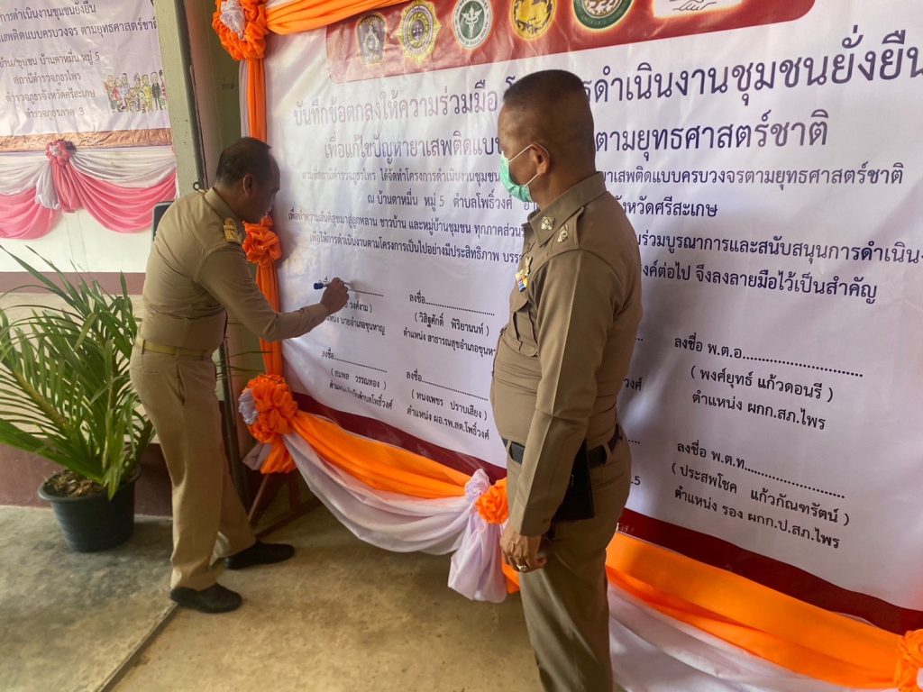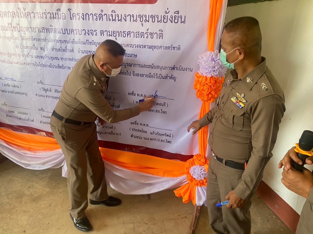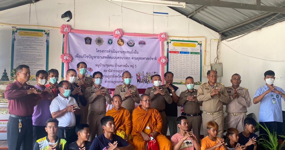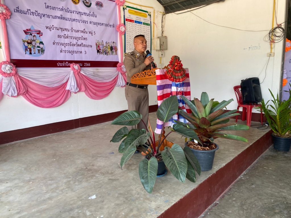 วันที่ (3 เม.ย.66) เวลา 12.30 น. พ.ต.อ.พงศ์ยุทธ์ แก้วดอนรี ผกก.สภ.ไพร พ.ต.ท.ประสพโชค แก้วกัณฑรัตน์ รอง ผกก.ป.สภ.ไพร พ.ต.ต.ประสาร มณีวรรณ์ สวป.สภ.ไพร หัวหน้าชุดปฏิบัติการชุมชนยั่งยืน พร้อมเจ้าหน้าที่ชุดปฏิบัติการ ร่วมกันจัดพิธีเปิดโครงการชุมชนยั่งยืน เพื่อแก้ไขปัญหายาเสพติดแบบครบวงจร ตามยุทธศาสตร์ชาติ ณ ศาลาประชาคมบ้านตาหมื่น ม.5 ต.โพธิ์วงศ์ อ.ขุนหาญ จ.ศรีสะเกษ โดยมีนายพรชัย วงศ์งาม นายอำเภอขุนหาญ เป็นประธานในพิธี ผู้นำท้องที่ ผู้นำท้องถิ่น ห้วหน้าส่วนราชการ ภาคประชาชน เยาวชน เข้าร่วมกิจกรรม