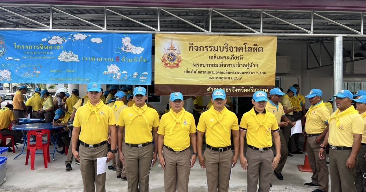 วันที่ ( 29 ต.ค. 2567 ) เวลา 08:00 น. พ.ต.อ.พงศ์ยุทธ์ แก้วดอนรี ผกก.สภ.ไพร พร้อมด้วยข้าราชการตำรวจจิตอาสา สภ.ไพร จำนวน 5 นาย เข้าร่วมกิจกรรมจิตอาสาบริจาคโลหิต เฉลิมพระเกียรติพระบาทสมเด็จพระเจ้าอยู่หัว เนื่องในโอกาสมหามงคลเฉลิมพระชนมพรรษา 6 รอบ 28 กรกฎาคม 2567 ณ ลานอเนกประสงค์ ภ.จว.ศรีสะเกษ