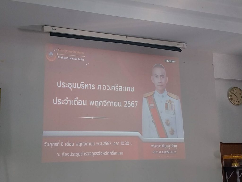 วันที่ 8 พ.ย. 2567 เวลา 09.00 น. พ.ต.อ.พงศ์ยุทธ์ แก้วดอนรี ผกก.สภ.ไพร ร่วมประชุมสหกรณ์ออมทรัพย์ตำรวจภูธรจังหวัดศรีสะเกษ ครั้งที่ 2/2568 และประชุมบริหารตำรวจภูธรจังหวัดศรีสะเกษ ประจำเดือนพฤศจิกายน 2567 โดย พล.ต.ต.พิษณุ วัตถุ ผบก.ภ.จว.ศรีสะเกษ เป็นประธาน มี รอง ผบก.ฯ หน.สภ.ในสังกัด และฝ่ายอำนวยการ เข้าร่วมประชุม ณ ห้องประชุมตำรวจภูธรจังหวัดศรีสะเกษ