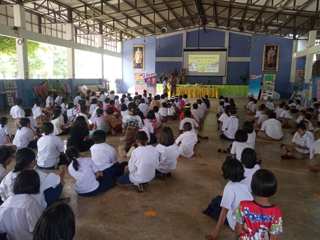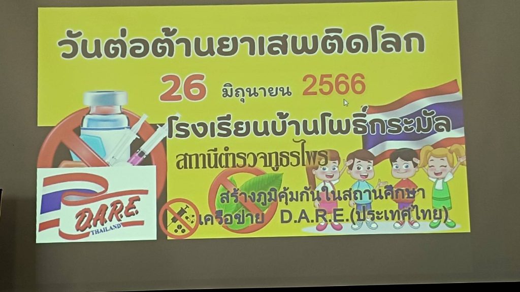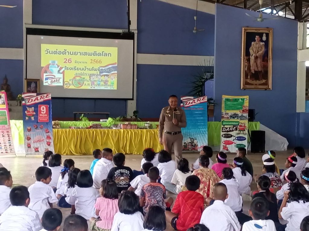 วันที่ 26 มิ.ย. 66 เวลา 13.00 น. พ.ต.ท นิคม ยุวะบุตร สว.สส.สภ.ไพร พร้อมด้วย ร.ต.ต. ภคพล บุญเรือง ร่วมจัดกิจกรรมสร้างภูมิคุ้มกันในสถานศึกษา เครือข่าย (d.a.r.e.ประเทศไทย) เนื่องในวันต่อต้านยาเสพติด ณ โรงเรียนบ้านโพธิ์กระมัล