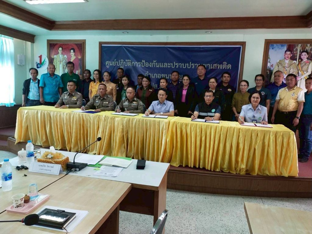 วันที่ 4 เม.ย. 2568 เวลา 13.30 น. พ.ต.ท.ประสพโชค แก้วกัณฑรัตน์ รอง ผกก.ป.สภ.ไพร ร่วมลงนามบันทึกข้อตกลงความร่วมมือ (MOU) ว่าด้วยความร่วมมือในการป้องกันและแก้ไขปัญหายาเสพติดอำเภอขุนหาญ ณ ห้องประชุมที่ว่าการอำเภอขุนหาญ โดยมี นายปวิช รัตวาลย์ นายอำเภอขุนหาญ เป็นประธาน