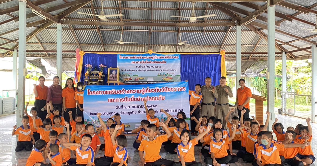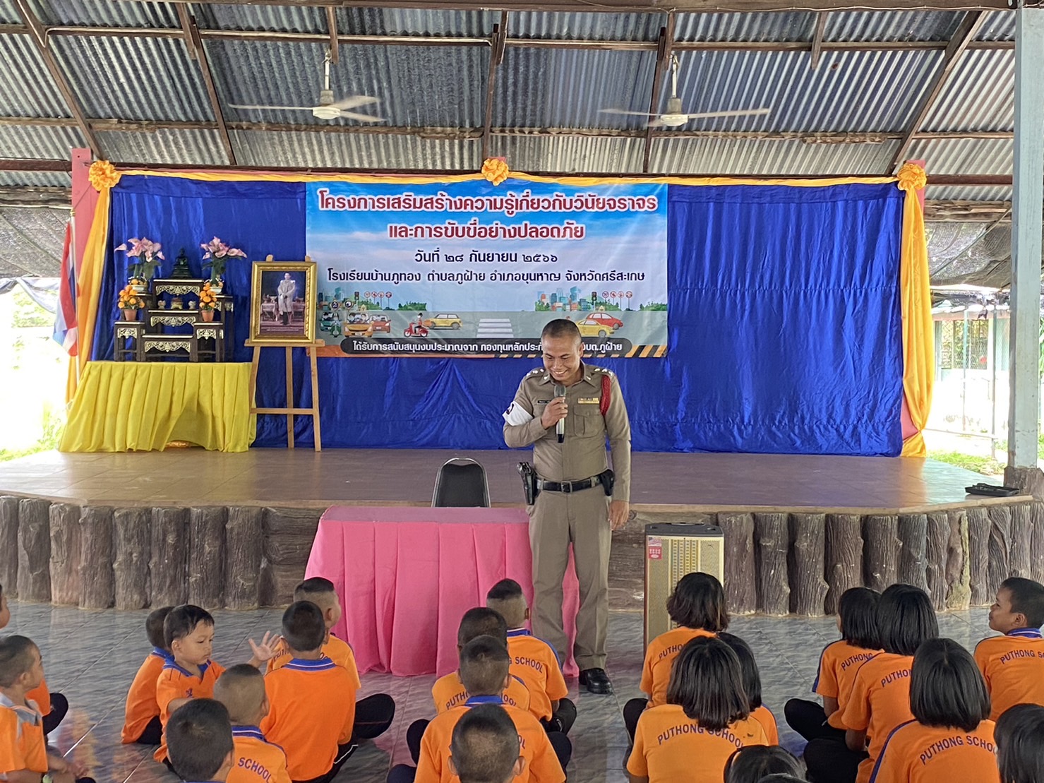 วันที่ (5 ต.ค.66) เวลา 09.00.น ภายใต้การอำนวยการของ พ.ต.อ.พงศ์ยุทธ์ แก้วดอนรี ผกก.สภ.ไพร พ.ต.ท.ประสพโชค แก้วกัณฑรัตน์ รอง ผกก.ป.สภ.ไพร พ.ต.ต.ประสาร มณีวรรณ์ สวป.สภ.ไพร มอบหมายให้ ร.ต.อ.กัมปนาท จงใจ รอง สว.จร.สภ.ไพร ,ด.ต.ยุทธนา ถาวร ผบ.หมู่(ป.) สภ.ไพร ,ส.ต.ต.วิศรุต สีลาทอง ผบ.หมู่(ป.) สภ.ไพร เป็นวิทยากรอบรมให้ความรู้ด้านกฎหมายจราจร แก่นักเรียนชั้นประถมศึกษา โรงเรียนบ้านภูทอง ต.ภูฝ้าย อ.ขุนหาญ จว.ศรีสะเกษ ณ ห้องประชุมโรงเรียนบ้านภูทอง