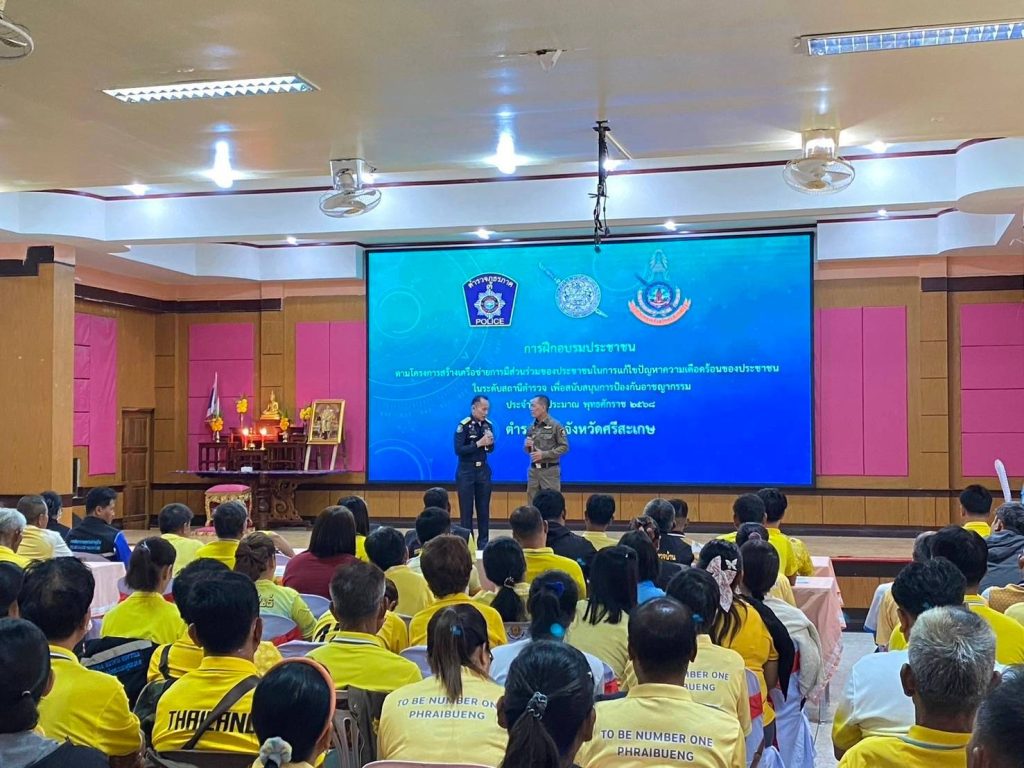 วันที่ 5 ก.พ. 2568 เวลา 09.00 น. พ.ต.อ.พงศ์ยุทธ์ แก้วดอนรี ผกก.สภ.ไพร พ.ต.ท.ประสาร มณีวรรณ์ สวป.สภ.ไพร พร้อมข้าราชการตำรวจ สภ.ไพร และเครือข่ายภาคประชาชน ในเขตพื้นที่ สภ.ไพร ร่วมกิจกรรมการฝึกอบรมประชาชน ตามโครงการสร้างเครือข่ายการมีส่วนร่วมของประชาชนในการแก้ไขปัญหาความเดือดร้อนของประชาชน ในระดับสถานีตำรวจ เพื่อสนับสนุนการป้องกันอาชญากรรม ประจำปีงบประมาณ 2568 โดยมี พ.ต.อ.ชยากร เทศะบำรุง รอง ผบก.ภ.จว.ศรีสะเกษ เป็นประธานในพิธี ณ โรงเรียนขุขันธ์ ต.ห้วยเหนือ อ.ขุขันธ์ จ.ศรีสะเกษ