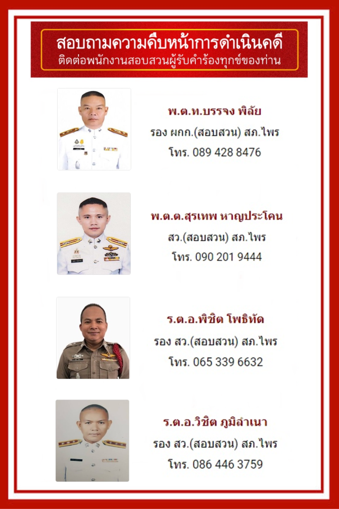 จุดประชาสัมพันธ์/สอบถามความคืบหน้าการดำเนินคดี